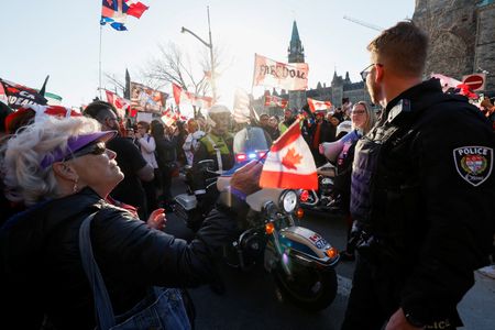 (Reuters) -Police in the Canadian capital, Ottawa, arrested several people on Friday, after a march by hundreds of bikers, pedestrians and cars waving Canadian flags through downtown Ottawa turned unruly, authorities said.