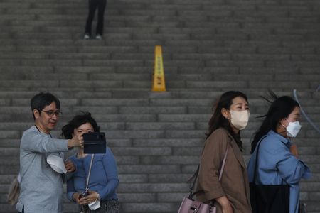 SEOUL (Reuters) – South Korea has loosened rules requiring masks to be worn outdoors as COVID-19 cases drop, but many people are not taking them off yet due to pervasive Omicron infections.
