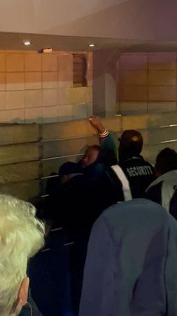 The assailant then stood up and ran around the stage, dodging a swarm of people for several seconds before they tackled him near the back of the stage.