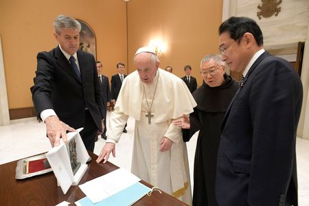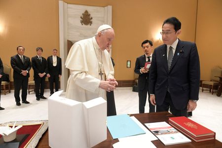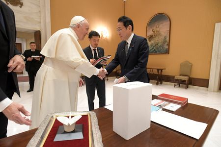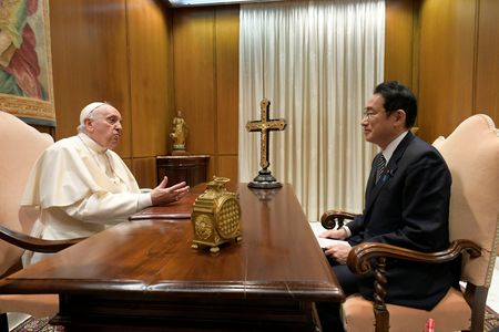 VATICAN CITY (Reuters) -Pope Francis and the prime minister of Japan, the only country to be hit by atomic bombs, met on Wednesday and discussed their common hope for a world free of nuclear weapons.