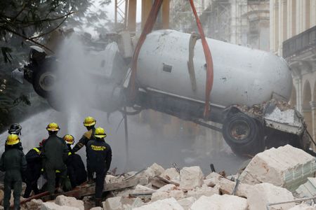 HAVANA (Reuters) – Cuban rescue workers on Saturday picked through rubble for bodies and possible survivors after a Havana boutique hotel was devastated by what authorities said was a gas explosion, leaving at least 26 dead.