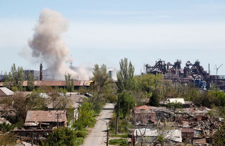 ZAPORIZHZHIA, Ukraine (Reuters) -As many as 60 people are feared to have been killed when a bomb struck a village school in eastern Ukraine, the regional governor said on Sunday while Russian forces continued shelling the last holdout of Ukrainian resistance in the ruined southeastern port of Mariupol.