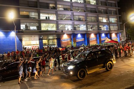 As the votes poured in, supporters outside the Marcos campaign headquarters jumped, waved flags and chanted “Marcos, Marcos, Marcos” ecstatically.