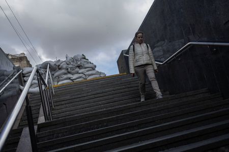 Kateryna Grigoriyevna, 79, a retired bank manager who has spent 10 weeks underground in the cavernous station, sat eating an ice cream she had ventured out to buy for Victory Day.