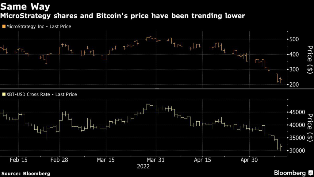 (Bloomberg) — Few companies are tethered as closely to Bitcoin as MicroStrategy Inc., a software company that’s plowed its profits and borrowed money into the cryptocurrency.