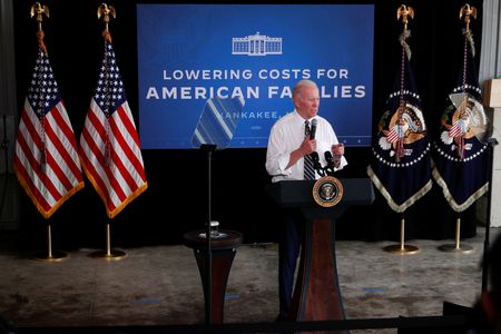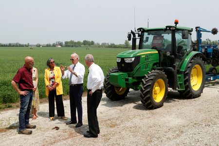 CHICAGO (Reuters) -U.S. President Joe Biden on Wednesday blamed Russia’s war on Ukraine for the latest spike in global food prices and visited a family farm in Illinois where he pledged to support the nation’s farmers as they seek to fill the supply shortage.