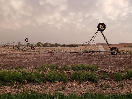 In central Nebraska, high winds mangled irrigation systems used to offset dry conditions for recently planted crops.