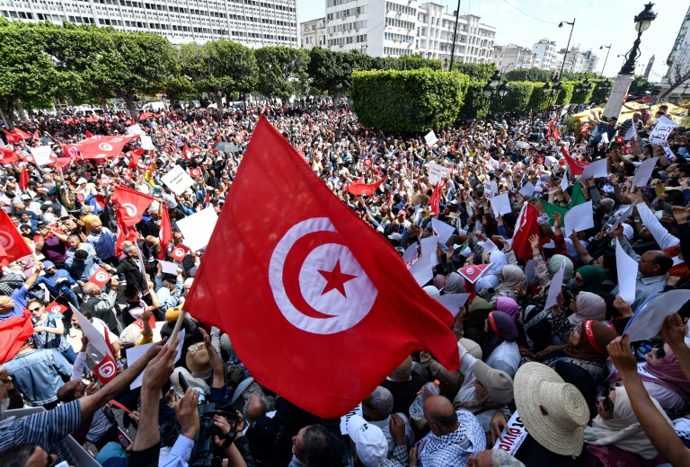 A crowd estimated at more than 2,000, lower than expected, took part Sunday in the first demonstration of a new alliance to oppose a power grab by President Kais Saied.
