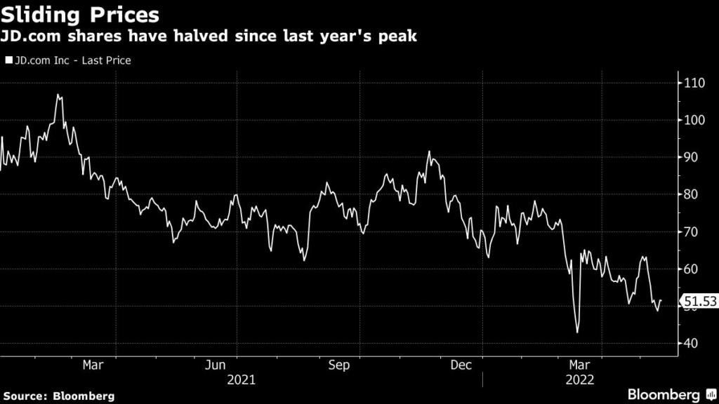 But ongoing concern about China’s priorities, the fallout from the country’s Covid lockdowns, along with US regulators’ plans to possibly force JD and some of China’s biggest companies to delist, are weighing on the stock.