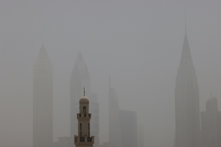 The 828-metre (2,716 ft, 6ins) Burj Khalifa, which towers over Dubai and is usually visible across the busy financial hub, retreated behind a curtain of airborne dirt that shrouded much of the country.