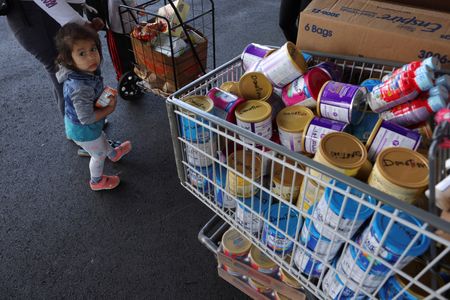 WASHINGTON (Reuters) -President Joe Biden took steps on Wednesday to address the shortage of infant formula in the United States, invoking the Defense Production Act to help manufacturers obtain the ingredients needed to ramp up supply, the White House said.
