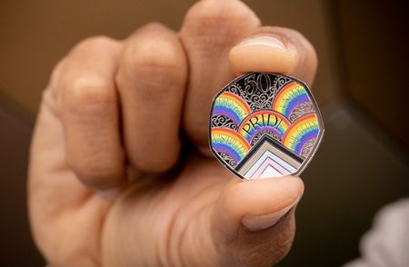 LONDON (Reuters) – Britain’s Royal Mint unveiled a special new commemorative rainbow-coloured 50 pence coin on Wednesday as a tribute to celebrate the 50th anniversary of the Pride UK movement.