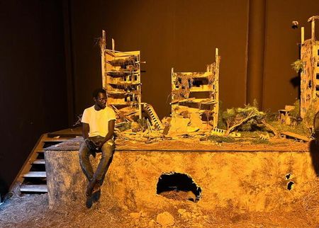Sow, 34, has spent the last three years preparing for the show. His main creative tool is the rubbish he collects when he wanders around his street, including discarded building materials, plastic sheets and disposable cups.