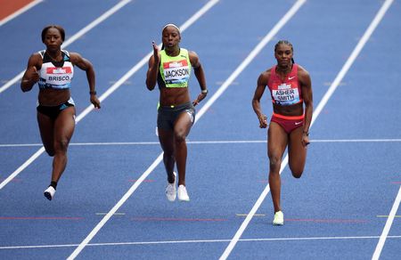 Britain’s 200m world champion Dina Asher-Smith finished strongly to seal a tight women’s 100m race at 11.11 seconds, edging out Jamaica’s Shericka Jackson by a hundredth of a second.