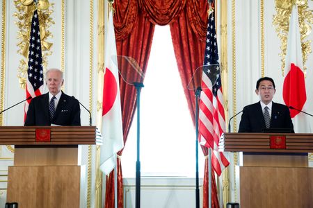 TOKYO (Reuters) -U.S. President Joe Biden said on Monday he would be willing to use force to defend Taiwan, in a series of critical comments about China he made in Tokyo that an aide said represented no change in U.S.