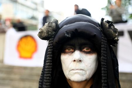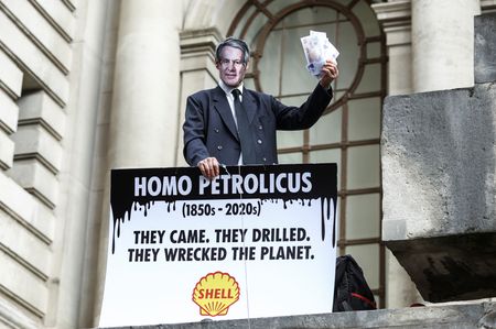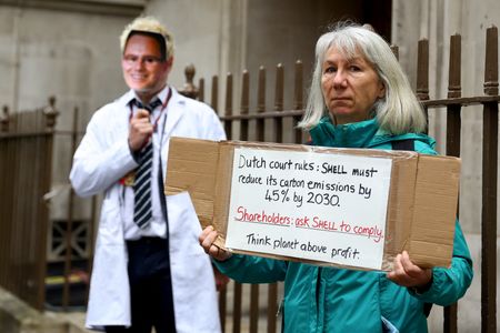LONDON (Reuters) – Shareholders backed Shell’s climate strategy in a meeting on Tuesday that was disrupted by dozens of climate protesters, while a climate activist proposal from the Follow This group received fewer votes than last year.