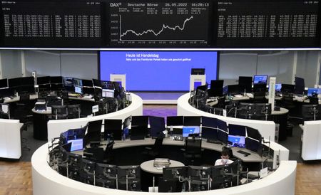 (Reuters) -European shares extended gains for a third straight session on Friday and were set for their biggest weekly jump in more than two months, as easing bets about aggressive interest rate hikes by central banks lifted sentiment.