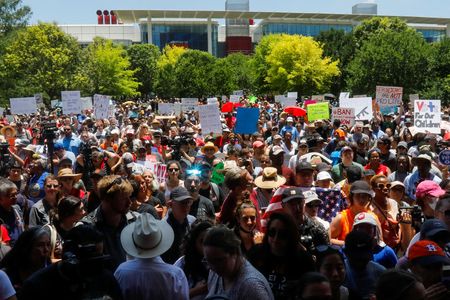 HOUSTON (Reuters) -Protesters holding signs and crosses with photos of victims from the Texas elementary school shooting protested Friday outside the National Rifle Association’s annual convention in Houston, as the gun lobby came under pressure after the massacre.