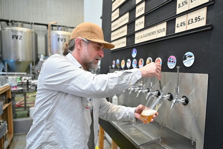Louis Bloomsfield inspects the kegs of beer at his brewery in north London, eagerly awaiting June, when he will get an extra day off every week.