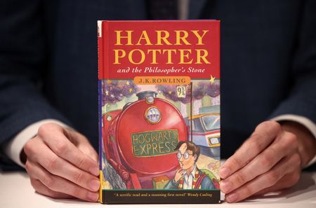 LONDON (Reuters) – A first edition of “Harry Potter and the Philosopher’s Stone”, with some errors and signed by author J.K. Rowling, is going up for a private sale at Christie’s in London, with the auction house inviting offers starting from 200,000 pounds ($250,000).