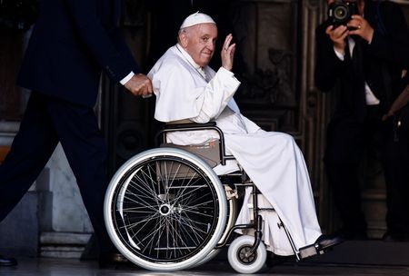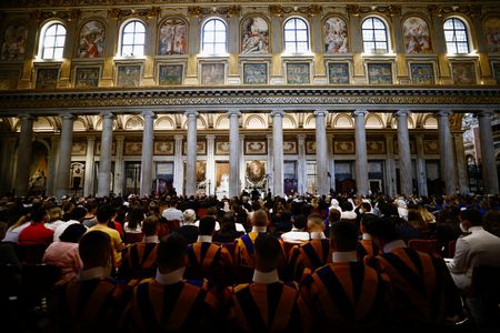 ROME (Reuters) – Pope Francis led an international prayer service for peace in Ukraine and other places stricken by war on Tuesday, sitting in his wheelchair before a statue that Romans traditionally associate with peace.