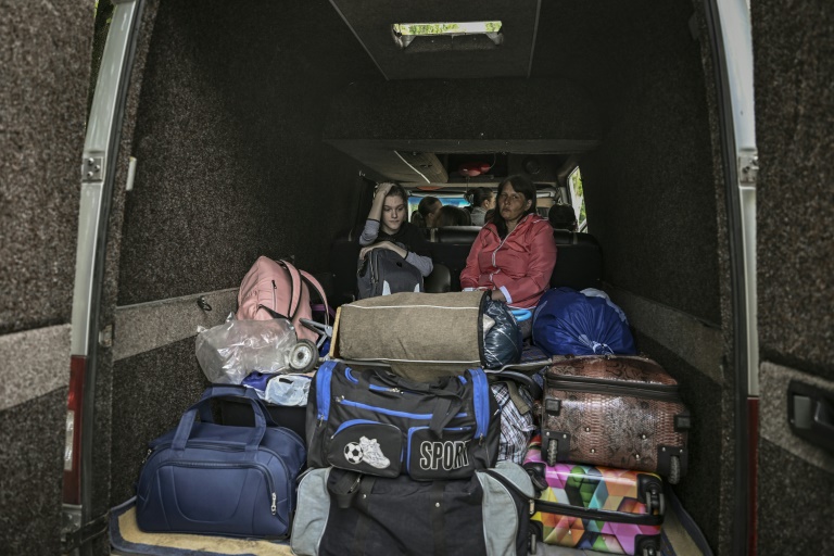 Outside an administrative office, she boarded one of five minibuses earmarked to take people out of the city in the Donetsk region that Moscow wants to control.