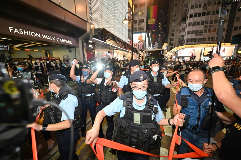 AFP reporters saw at least half a dozen people being taken away by police on Saturday, the majority in the evening, including activist Yu Wai-pan from the League of Social Democrats (LSD) party.