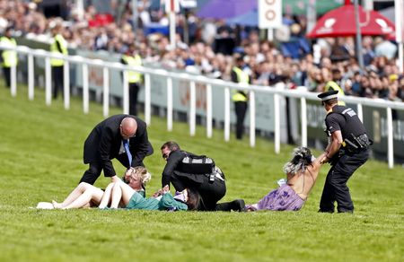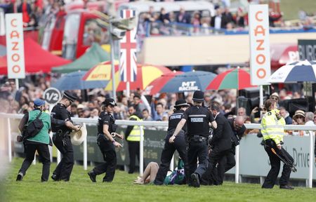 (Reuters) – The Epsom Derby was delayed on Saturday after six protesters from campaign group Animal Rebellion entered the course and had to be removed by the police.