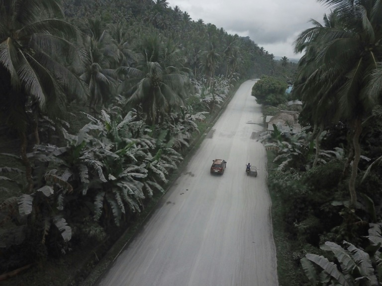 Images of the aftermath showed houses, roads, and trees in Juban town covered in ash, with vehicles struggling to navigate the road due to poor visibility.