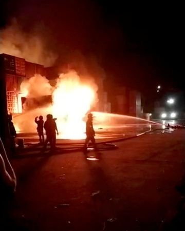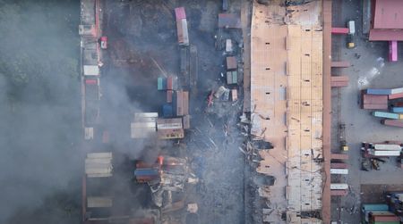 Drone footage showed thick columns of smoke and rows of burnt-out containers.