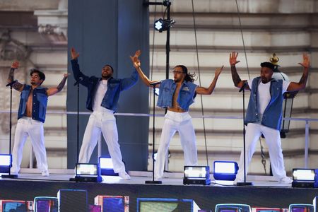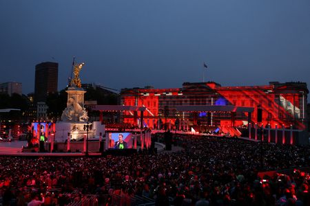 Queen’s “We Will Rock You” then opened the show before the cast of “Hamilton,” Andrea Bocelli, Alicia Keys and Diana Ross performed in front of tens of thousands of people crammed around the palace, down the Mall grand boulevard and in a nearby park.