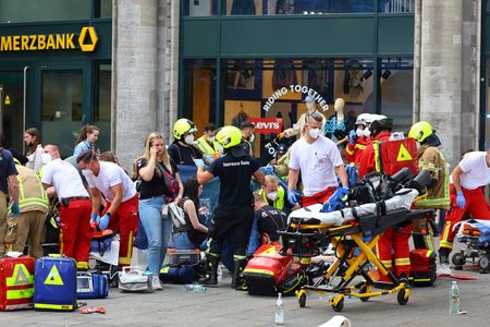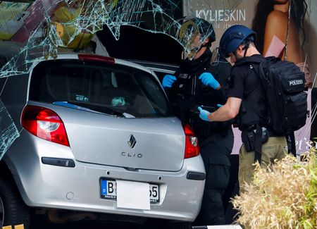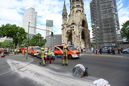 BERLIN (Reuters) -A 29-year-old man drove into a crowd of people in Berlin on Wednesday, killing a teacher and injuring 14 of her students, as his car twice veered onto a pavement in a popular shopping district, officials said.
