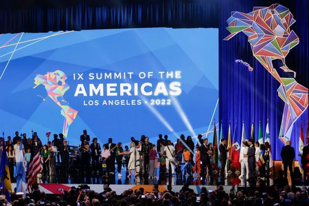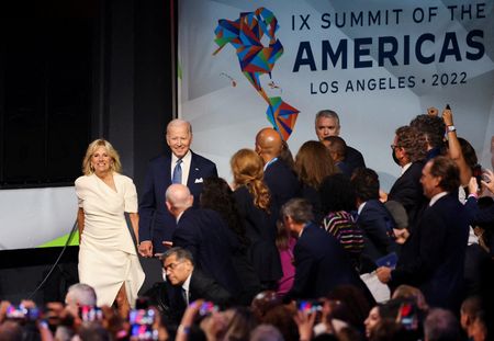 LOS ANGELES (Reuters) -President Joe Biden urged top U.S. business executives on Thursday to help bolster his plan for an environmentally-friendly economic partnership with Latin America on the first full day of a regional summit riven by tensions over the guest list.