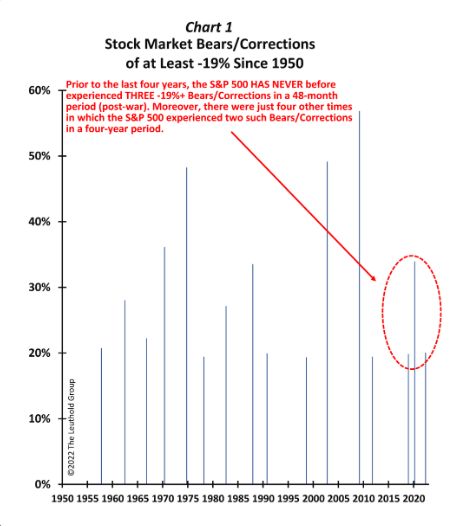 Such oft-repeated turbulence had never happened since at least 1950, according to Leuthold Group.