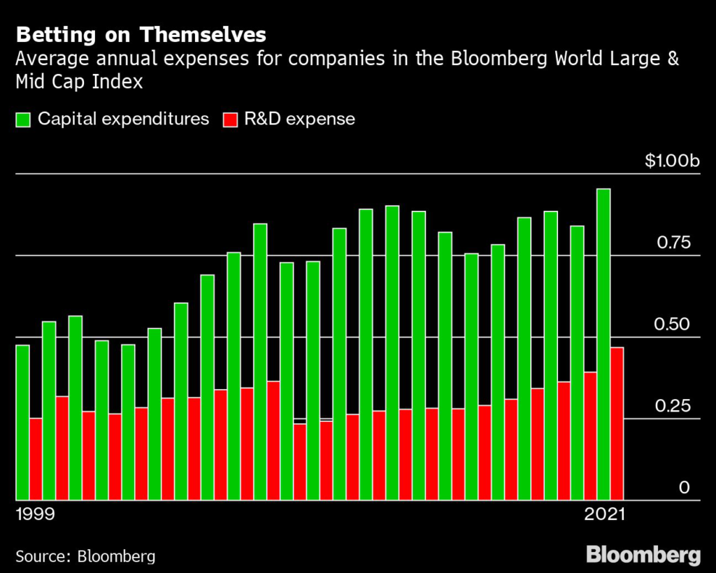 AS MONEY became cheaper, the 3,000 companies in the Bloomberg World Large & Mid Cap Index in 2021 spent on average: