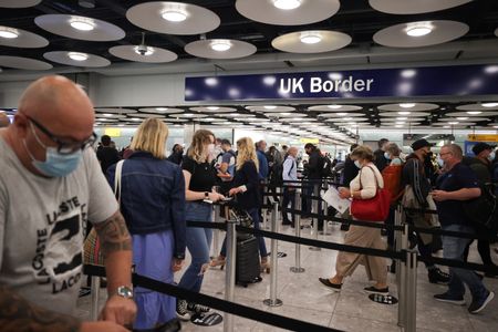 (Reuters) – Britain’s Department for Transport on Saturday denied a report that the government was considering issuing temporary visas to workers from the European Union to ease a staffing crisis at airports.