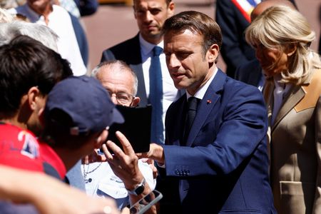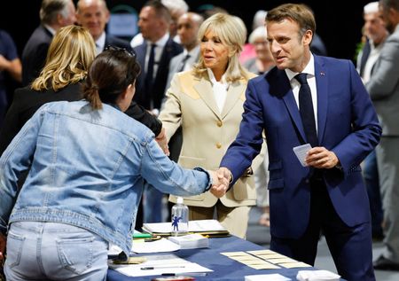 PARIS (Reuters) -President Emmanuel Macron faces a tough fight to win an absolute majority in parliament that would allow him to govern with a free hand after a strong showing by a new left-wing alliance in Sunday’s first-round election.