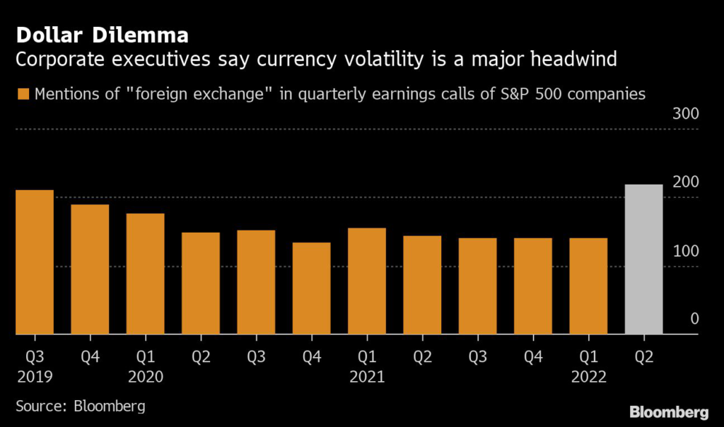 In fact, references to “foreign exchange” are popping up in earnings calls at the fastest clip in three years, according to a Bloomberg analysis.
