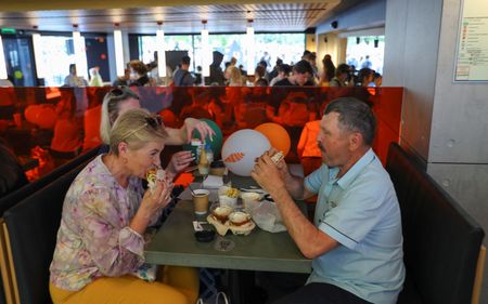 Moments after the news conference, a man stood up in front of the cameras holding a sign that read “Bring back the Big Mac”.