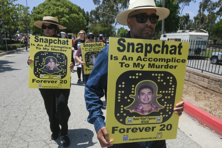 Sam Chapman, part of a group that staged a protest Monday in front of Snapchat’s Santa Monica headquarters, told AFP his son died in February 2021 after a pill he purchased through the platform was laced with the extremely powerful opioid fentanyl.