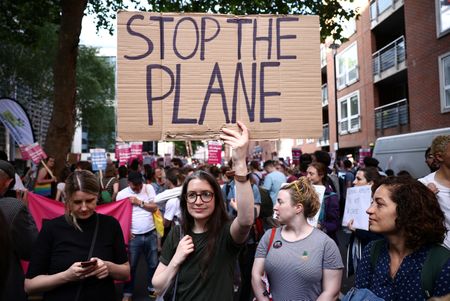 LONDON/BOSCOMBE DOWN, England (Reuters) -Britain’s first flight to take asylum seekers to Rwanda was pulled at the eleventh hour on Tuesday after the European Court of Human Rights issued injunctions to stop the deportation of the handful of migrants on board, a government source said.