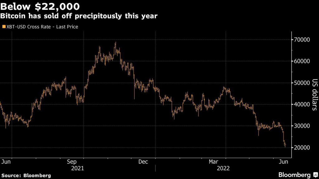 The coin’s drop this year has brought it to around $21,300 Wednesday, its lowest point since December 2020, meaning no one who bought over the past year and a half has made a profit.