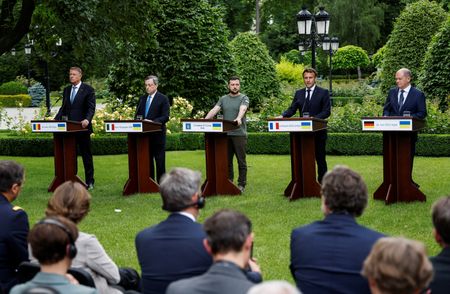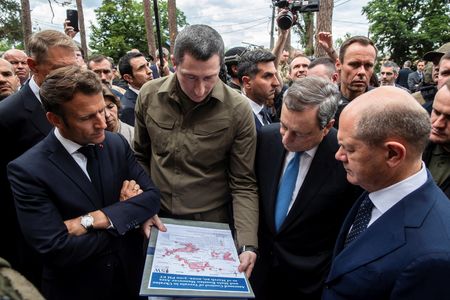 KYIV/IRPIN, Ukraine (Reuters) -The leaders of Germany, France and Italy, all criticised in the past by Kyiv for support viewed as too cautious, visited Ukraine on Thursday and offered the hope of EU membership to a country pleading for weapons to fend off Russia’s invasion.