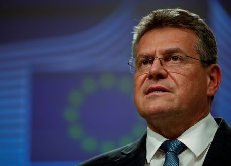 LONDON (Reuters) – The European Union will keep all options on the table in terms of its response to Britain’s move to override some post-Brexit rules for Northern Ireland, Maros Sefcovic said on Thursday, when asked about the possibility of a trade war.