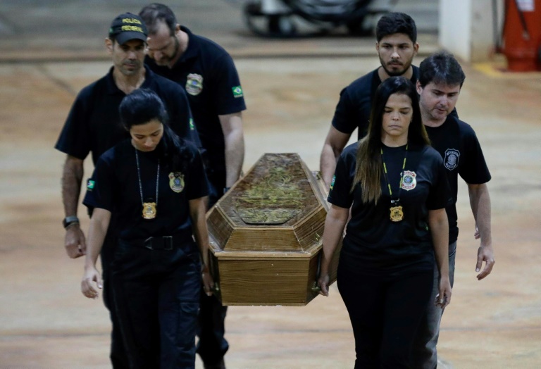 Human remains unearthed from the site arrived in Brasilia on Thursday evening for identification by experts, with members of the federal police seen carrying two brown coffins through a hangar.