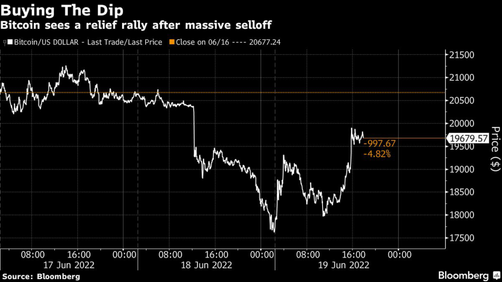 Bitcoin came tantalizingly close to retaking $20,000 at several points during the day, only to retreat, and stood at $19,450 as of 12:30 p.m. in New York. Ether, which touched as low as $881 in the selloff, climbed 17% to $1,060, while alternative coins from Avalanche to Solana also enjoyed gains.