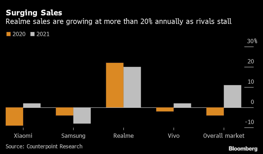 “Realme has held back the growth of Xiaomi and Samsung,” Pathak said.