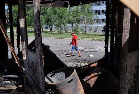 KYIV (Reuters) -Russian forces captured territory along a frontline river in eastern Ukraine and intensified pressure on two key cities on Monday, after Ukrainian President Volodymyr Zelenskiy predicted Moscow would escalate attacks ahead of an EU summit expected to welcome Kyiv’s bid to join the bloc.