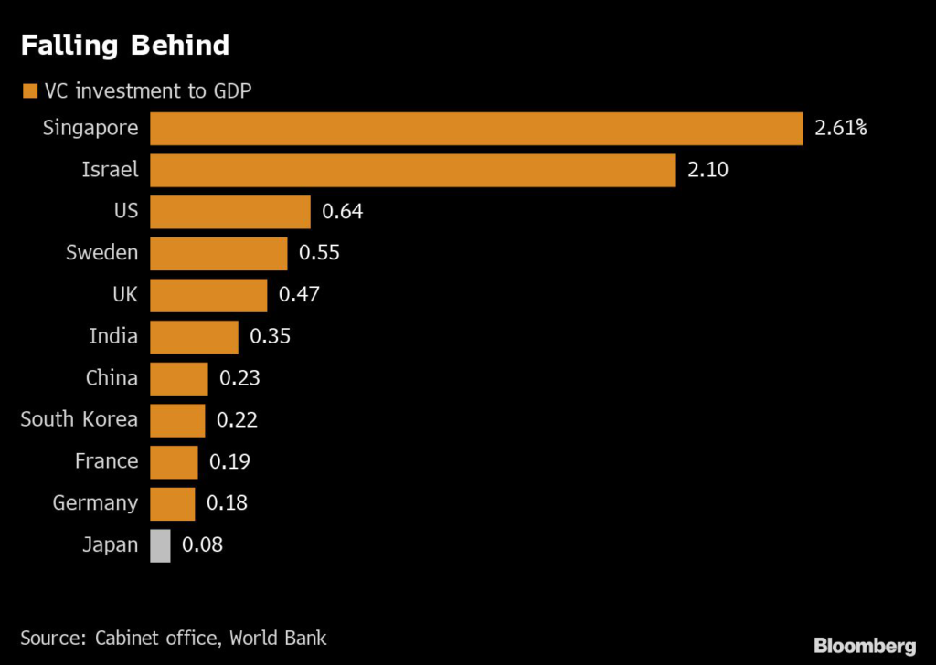 Venture capital investment in Japan relative to gross domestic product trails behind the other Group of Seven nations and beyond, he added.