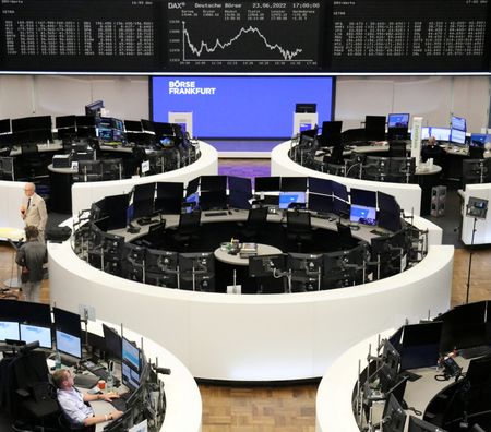 (Reuters) -European stocks jumped 2.6% on Friday, pushing them into positive territory for the week as investors started to scale back central bank tightening bets, spurring inflows into risky assets.
